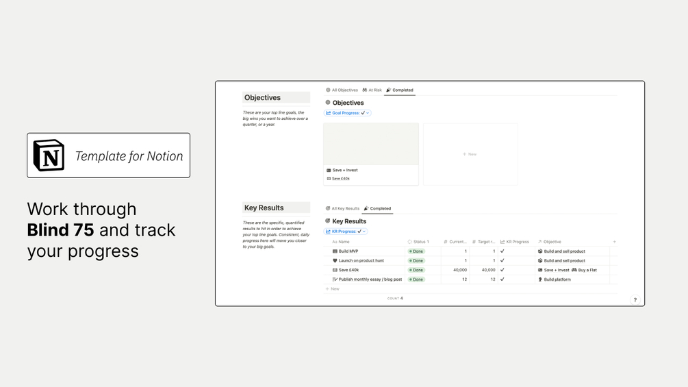 Get access to a study template, for tracking working through the 'Blind 75' list of problems.